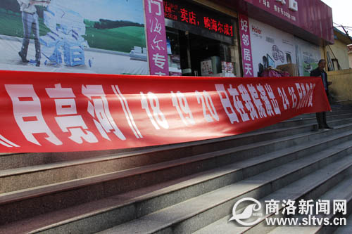 《月亮河》18日起對外演出,工作人員正在懸掛宣傳橫幅