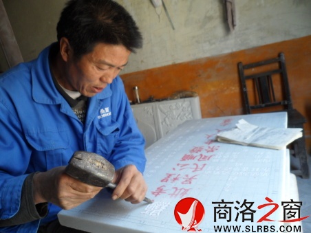 “我這個石刻雕琢的手藝是祖?zhèn)鞯?,爺爺張生華、父親張開齊都是他們那個年代本地出名的石刻手藝人,我從小便受父親的熏陶,耳濡目染地也喜歡上了石刻工藝。干碑石雕刻這門活計(jì)很辛苦,受臟受累放一邊,一年四季下來刻出三四十塊碑也賺不了多余錢,加上被邀上門做的石刻作品,平均下來就是兩三萬元收入,勉強(qiáng)夠維持一家生計(jì)。相比較現(xiàn)在的電腦雕刻,人家的字面的美術(shù)度、雕刻工藝的精準(zhǔn)度我無法企及,但我不羨慕他們,因?yàn)槲疫@個是純手工毛筆碑面寫字,純手工工藝雕刻的,含金量與電腦雕刻的大有不同,但凡識貨的都會奔著我這個來的。”看我很有誠意,老張索性打開了話匣子。“我做此活計(jì)都30多年了,一輩子就喜歡這個。前年咱商洛有家電視臺來采訪我,說這屬于民間工藝,要我談?wù)剬@門手藝的傳承和看法,我實(shí)話實(shí)說,‘這門手藝到我這里就算到頭了,時下有了電腦機(jī)械加工的石刻工藝,受它的市場擠壓,現(xiàn)人工雕刻的作品少有人喜歡了,就連我的兒子也看不上學(xué),嫌又臟又累、枯燥無味,現(xiàn)出門常年在上海打著零工’。好在還有我在,說實(shí)話,我真的不想這門手藝在我手上失傳的。要說自己嘛,小人物一個,就是農(nóng)村一個土石匠,也沒啥其他本事,一輩子就靠磕打石頭吃飯了!”