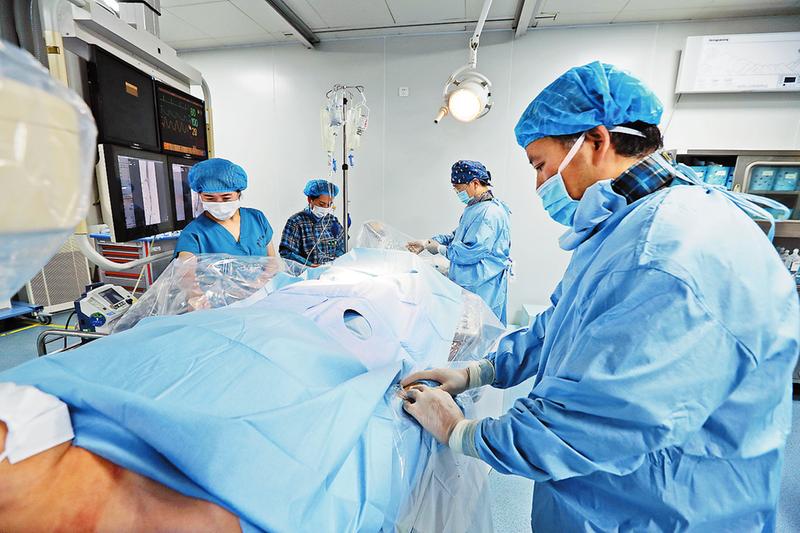 心臟介入診療手術(shù)創(chuàng)傷小、見(jiàn)效快,尤其對(duì)急性心肌梗死在第一時(shí)間內(nèi)搶救生命極為重要。從手腕或大腿根部血管穿刺建立通道,利用導(dǎo)管、導(dǎo)絲直達(dá)心臟血管病變部位,進(jìn)行血栓抽吸、球囊擴(kuò)張或植入支架,從發(fā)病到血管開(kāi)通時(shí)間越短效果越好。對(duì)冠心病引起的心絞痛,手術(shù)后癥狀可明顯得到改變。