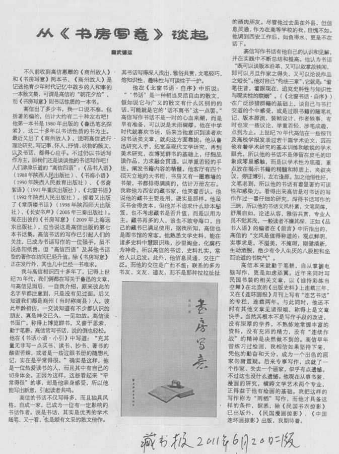2011.6武德運(yùn)在《藏書(shū)報(bào)》刊發(fā)的《從<書(shū)房寫(xiě)意>談起》