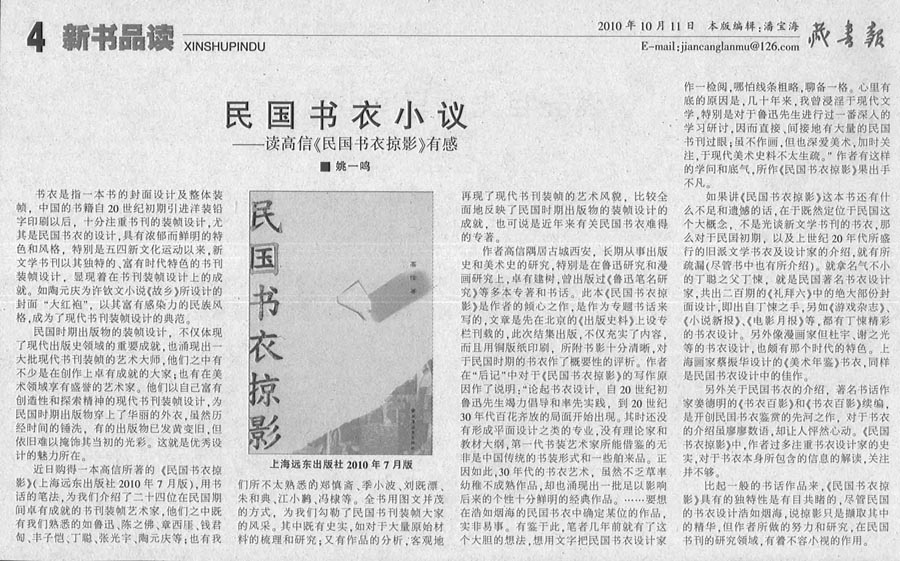 姚一鳴評《民國書衣掠影》于2010.10.11《藏書報》