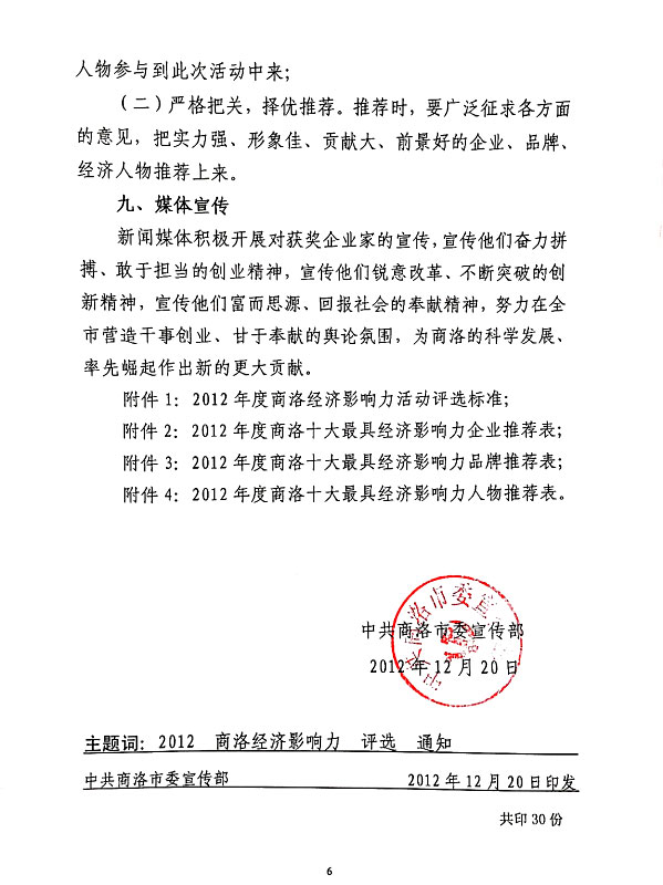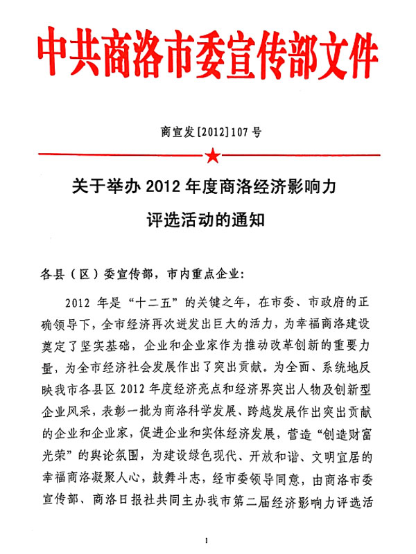 關(guān)于舉辦2012年度商洛經(jīng)濟(jì)影響力評選活動的通知