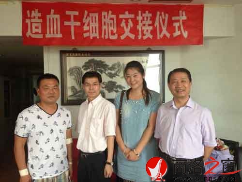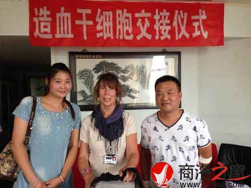 前排從左到右依次是英國(guó)醫(yī)生、中華骨髓庫(kù)北京總庫(kù)的劉維新副主任、中國(guó)造血干細(xì)胞捐獻(xiàn)者資料庫(kù)陜西分庫(kù)主任劉耀堂,后排從左到右依次是我省首例涉外捐獻(xiàn)造血干細(xì)胞志愿者他愛(ài)人、我省首例涉外捐獻(xiàn)造血干細(xì)胞志愿者、楊鑫。