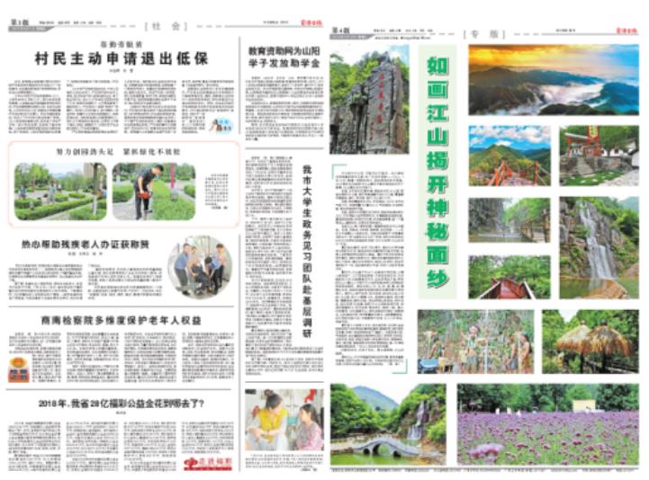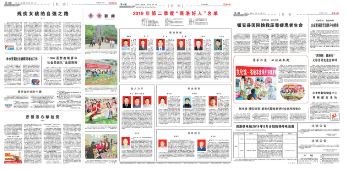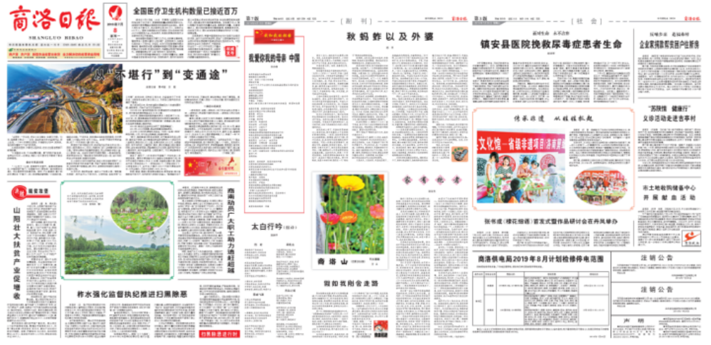 商洛日報(bào)緊緊圍繞全市中心工作,精心組織“慶祝新中國成立70周年”、“追趕超越”、掃黑除惡、秦嶺生態(tài)環(huán)境專項(xiàng)整治等重大主題宣傳,充分展示了我市全面推動發(fā)展、全面深化改革、全面從嚴(yán)治黨的新舉措新成效新經(jīng)驗(yàn)。在報(bào)紙開設(shè)了《壯麗70年 奮斗新時(shí)代——美麗商洛看過來、追趕超越我見證》《難忘的新中國記憶》《我和我的祖國》《追趕超越 黨建領(lǐng)航》《改革進(jìn)行時(shí)》《商洛正能量》《掃黑除惡進(jìn)行時(shí)》等一批品牌特色欄目,以更具公信力的信息發(fā)布、更權(quán)威的政策解讀、更有力的輿論監(jiān)督,鍛造了報(bào)紙的新聞品牌。