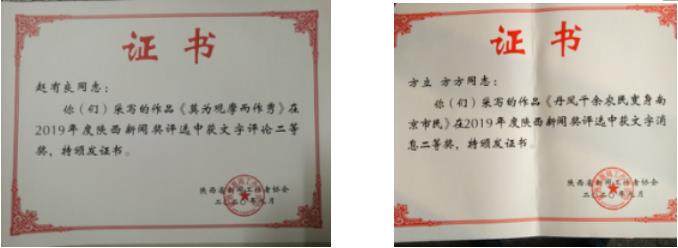 通過全體采編人員的不懈努力,商洛日報在2020年度新聞獎評選中獲得優(yōu)異成績,其中本報記者方立、方方采寫的消息《丹鳳千余農(nóng)民變身南京市民》,趙有良撰寫的評論《莫為觀摩而作秀》獲2019年度陜西新聞二等獎,本報記者南書堂、汪锳采寫的通訊《從“不堪行”到“變通途”》,本報記者趙有良、汪锳、賈書章采寫的通訊《一位鄉(xiāng)土作家的“農(nóng)民課堂”》獲2019年度陜西新聞三等獎;《黃河明珠天鵝城》《山鄉(xiāng)婚禮記憶》等5件作品獲2019年度中國地市報新聞獎一、二、三等獎,《我市跨入“國家森林城市”行列》《全國最大的數(shù)字化益生元(菊芋)制造中心商州建成》等13件作品獲2019年度商洛新聞獎一、二、三等獎。100多篇報道被“學(xué)習(xí)強(qiáng)國”平臺及中、省主流媒體刊發(fā)推送。本報副總編、主任記者趙有良被陜西省新聞工作者協(xié)會授予“陜西省優(yōu)秀新聞工作者”稱號,并入選陜西省2019年宣傳思想文化系統(tǒng)“六個一批”人才。