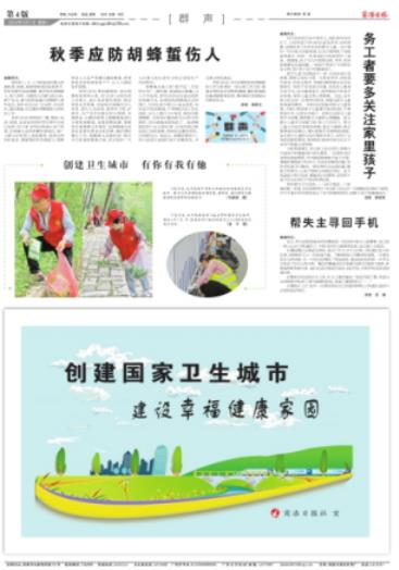 另外,三版通過《環(huán)保督查》 《健康教育》《創(chuàng)文進(jìn)行時》等專題專欄,全面深入報道了我市科教文衛(wèi)等方面的進(jìn)展成就,展示了全市衛(wèi)生、教育、科技事業(yè)發(fā)展碩果,有效發(fā)揮了普及科學(xué)知識的作用。