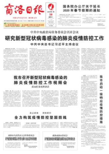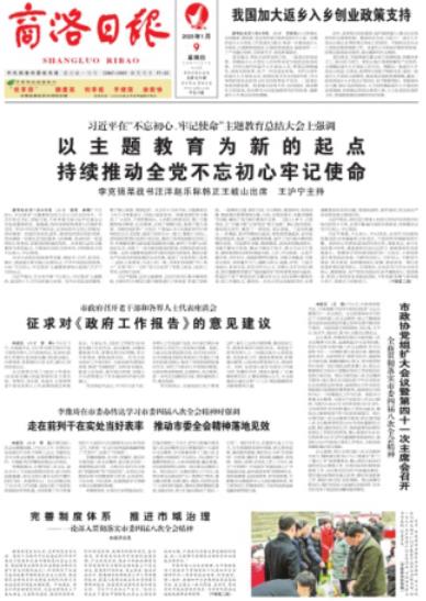 2020年,在中共商洛市委的堅(jiān)強(qiáng)領(lǐng)導(dǎo)下,在市委宣傳部的精心指導(dǎo)下,商洛日報堅(jiān)持以習(xí)近平新時代中國特色社會主義思想為指導(dǎo),以學(xué)習(xí)宣傳貫徹黨的十九大、十九屆五中全會精神和習(xí)近平總書記來陜考察重要講話重要指示精神為主線,緊緊圍繞全市中心工作,著力強(qiáng)化新聞輿論引導(dǎo)力、報業(yè)經(jīng)營競爭力和新聞隊(duì)伍影響力,全力講好商洛好故事、傳播商洛好聲音,為推動全市經(jīng)濟(jì)社會高質(zhì)量發(fā)展提供了強(qiáng)大的精神動力和輿論支持。