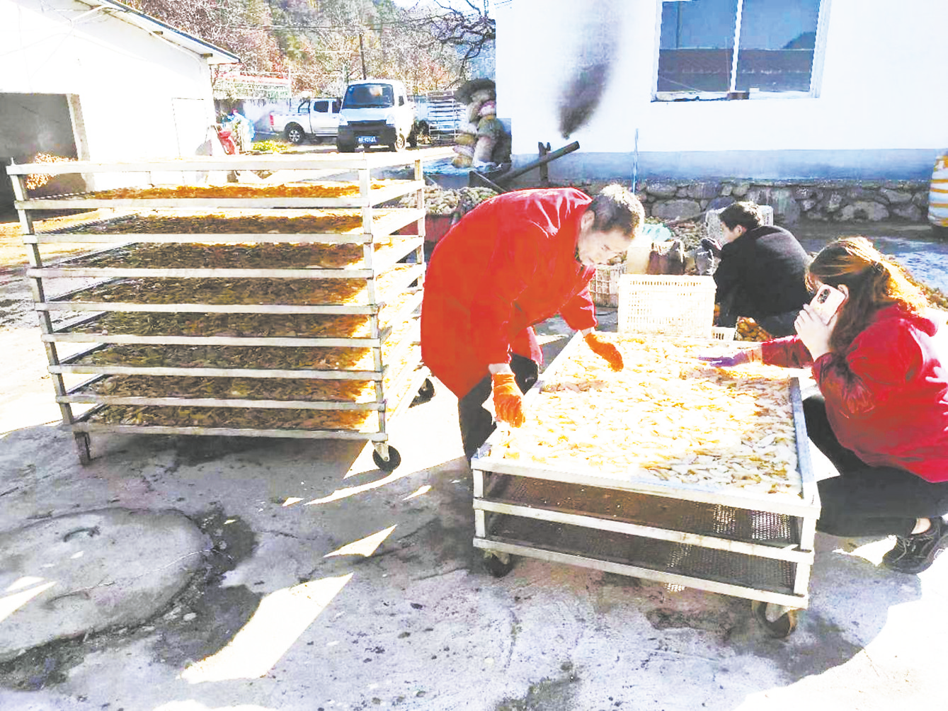 村民在晾曬天麻