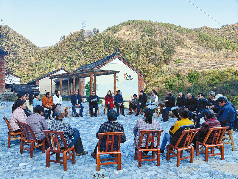 11月5日,在丹鳳縣竹林關(guān)鎮(zhèn)南院村,一場別開生面的“鄉(xiāng)音黨課”正在進行。由老黨員、退休教師、老干部組成的“講師團”向群眾宣講黨的二十屆三中全會精神,鄉(xiāng)親們緊緊圍坐在一起,聆聽黨的“好聲音”,感受黨的好政策,共話美好新生活。 (本報通訊員 蘇甜甜 攝)