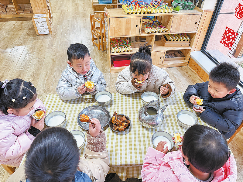 “幼兒期是生長(zhǎng)發(fā)育的關(guān)鍵期,這一時(shí)期幼兒的身體發(fā)育需求旺盛,我們會(huì)努力在食品的制作上精細(xì)化、多樣化、營(yíng)養(yǎng)化。”丹鳳縣第一幼兒園園長(zhǎng)楊莉說(shuō),“餐點(diǎn)味道以清淡為主,粗細(xì)糧搭配,有些孩子雞蛋吃多了厭煩,我們就做成蛋撻等小甜品,改善口味,確保孩子營(yíng)養(yǎng)多樣化。”