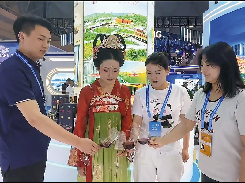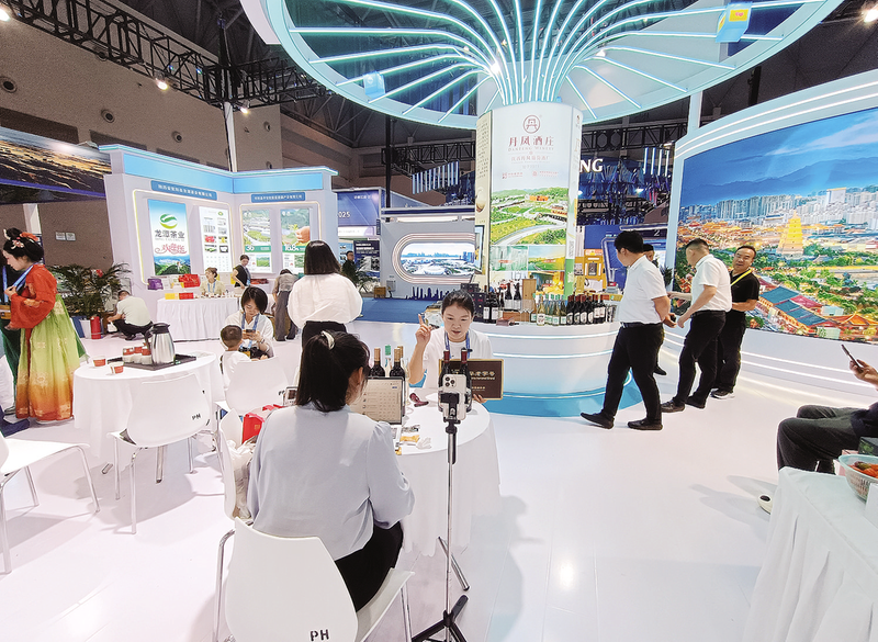 此次參展期間,丹鳳酒莊精心打造了視覺盛宴:醇香品鑒區(qū)里,10多款佳釀在醒酒器中綻放琥珀光澤;數(shù)字展示屏前,葡萄園四季流轉(zhuǎn)的影像與百年酒窖的斑駁光影交相輝映;云端直播間內(nèi),主播手持“大芳”牌酒標復(fù)刻版娓娓道來。參展期間,丹鳳酒莊通過線上線下聯(lián)動奏響交響曲——現(xiàn)場接待近千名客商品鑒洽談,云端直播間收獲超10萬次互動,創(chuàng)新營銷模式實現(xiàn)銷售額突破12萬元。