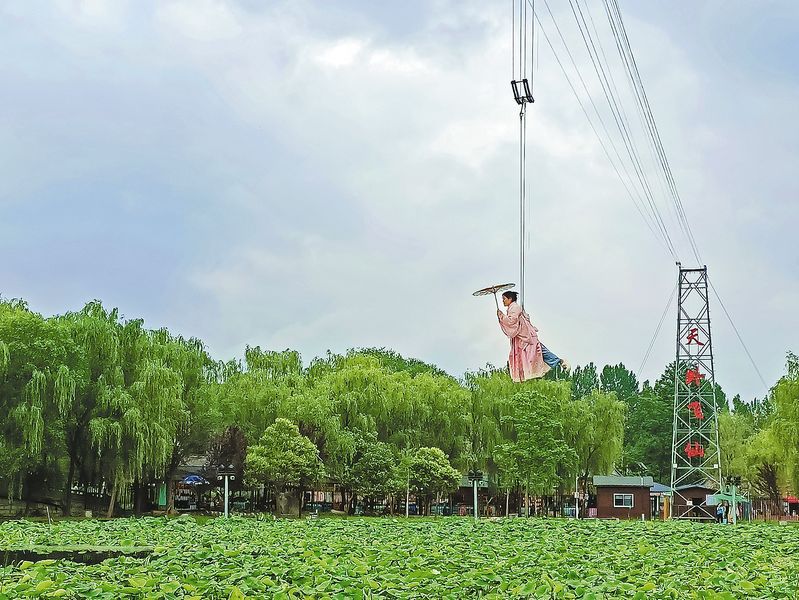 端午假期,丹鳳縣棣花景區(qū)樹(shù)木蔥蘢,荷葉田田,游人如織。有的觀賞荷塘美景,有的揮槳?jiǎng)澊?,有的體驗(yàn)“空中飛人”的刺激,清涼又浪漫。 (本報(bào)通訊員 彭 濤 攝)