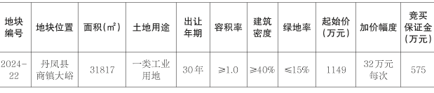 四、本次拍賣(mài)出讓的詳細(xì)資料和具體要求,見(jiàn)拍賣(mài)出讓文件。申請(qǐng)人可于2025年6月4日至6月23日到丹鳳縣自然資源局一樓(丹鳳縣土地收購(gòu)儲(chǔ)備中心)獲取出讓文件。