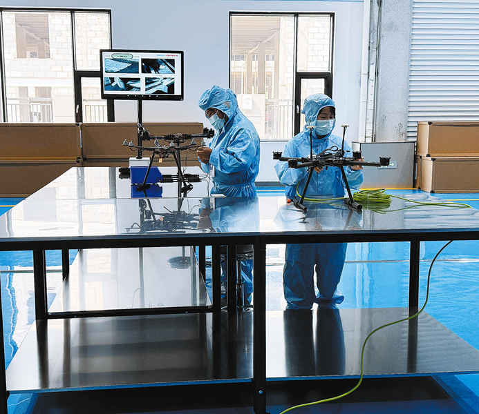 六月十日,位于丹鳳縣的中天禹辰高端無(wú)人機(jī)制造產(chǎn)業(yè)園車間內(nèi),工人們穿著隔離服精準(zhǔn)操作,一臺(tái)臺(tái)外表炫酷、功能強(qiáng)大的無(wú)人機(jī)就在這里誕生。該項(xiàng)目由陜西中天禹辰航空智能科技有限公司投資建設(shè),項(xiàng)目總投資五點(diǎn)八億元,建成后將填補(bǔ)陜南地區(qū)高端無(wú)人機(jī)研發(fā)制造的空白,推動(dòng)商洛低空經(jīng)濟(jì)與數(shù)字經(jīng)濟(jì)深度融合發(fā)展。