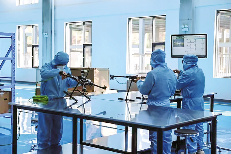 中天禹辰無人機生產(chǎn)線上,工人正在組裝配件。