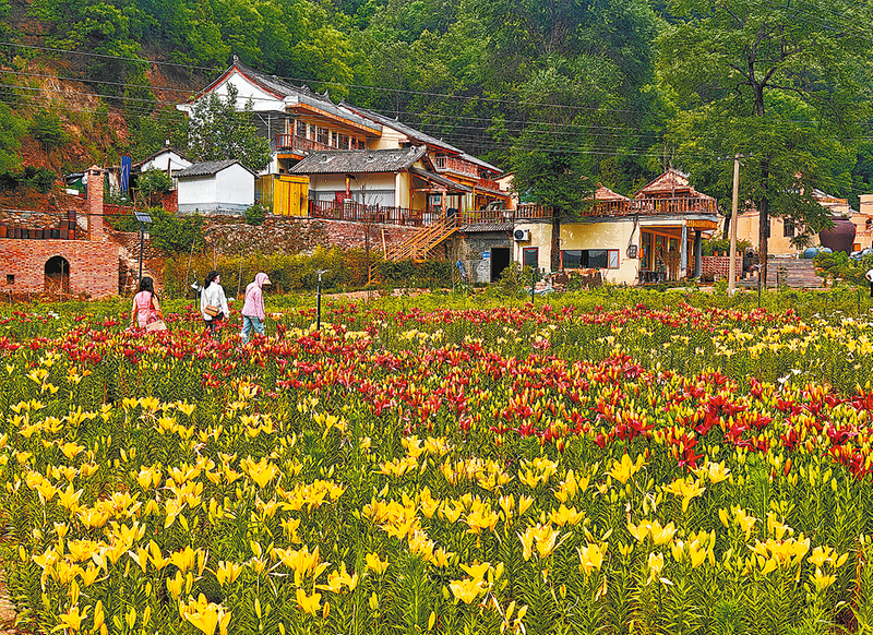 盛夏6月,漫步在丹鳳縣龍駒寨街道資峪溝村的青石板路上,古色古香的三里棧原鄉(xiāng)民宿掩映在連片的百合花海中,在遠(yuǎn)處的秦嶺山脈襯托中,顯得更加寧?kù)o雅致。幾名游客擺起了姿勢(shì),在花海中拍照。