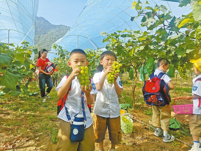 研學(xué)活動中,孩子們體驗(yàn)葡萄采摘的樂趣。