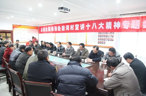 在專題會(huì)上,張盈安從黨十八大報(bào)告提出到2020年全面建成小康社會(huì)的奮斗目標(biāo),堅(jiān)持走中國(guó)共產(chǎn)黨領(lǐng)導(dǎo)的中國(guó)特色社會(huì)主義道路,完善未來發(fā)展體系和把我國(guó)建成富強(qiáng)、民主、文明、和諧的社會(huì)主義現(xiàn)代化國(guó)家等四個(gè)方面,結(jié)合我縣和云蓋寺鎮(zhèn)實(shí)際情況,對(duì)黨的十八大報(bào)告的要點(diǎn)和主要精神深入淺出地進(jìn)行了全面解讀。張盈安指出,黨的十八大確立的重大理論觀點(diǎn)、重大方針政策和重大工作部署,明確了未來五年乃至十年的發(fā)展目標(biāo)和任務(wù),對(duì)于全面建成小康社會(huì)、改變貧困地區(qū)面貌具有重大意義。云蓋寺鎮(zhèn)和巖灣村要以十八大精神為統(tǒng)領(lǐng),進(jìn)一步完善工作措施,加大工作力度,全面推動(dòng)巖灣村各項(xiàng)事業(yè)全面發(fā)展。