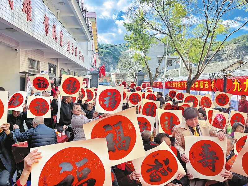 志愿服務(wù)團(tuán)隊(duì)在重陽(yáng)節(jié)為群眾送“?!白?/font>