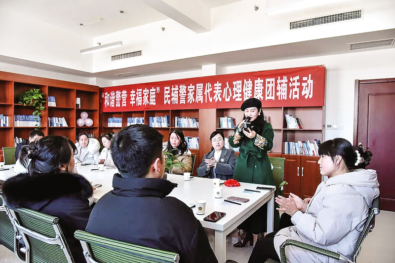 楊華(右二)在“和諧警營(yíng) 幸福家庭”民輔警家屬代表心理健康團(tuán)輔活動(dòng)上發(fā)言