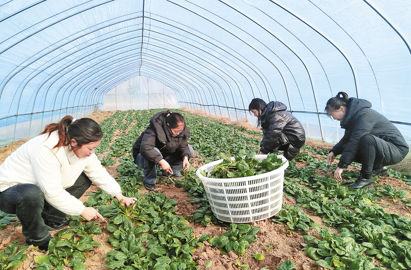 洛南縣寧歸來農(nóng)業(yè)專業(yè)合作社產(chǎn)業(yè)示范園采取輪種方式種植橫溪小西瓜、圣女果、西紅柿、貝貝南瓜、菠菜等果蔬,既為附近100多戶群眾提供了家門口就業(yè)增收的機會,又提高了土地利用率,極大地豐富了當(dāng)?shù)厝罕姷?ldquo;菜籃子”。圖為1月7日,務(wù)工群眾在示范園內(nèi)的瓜果蔬菜大棚采摘菠菜。 (本報通訊員 畢波波 攝)