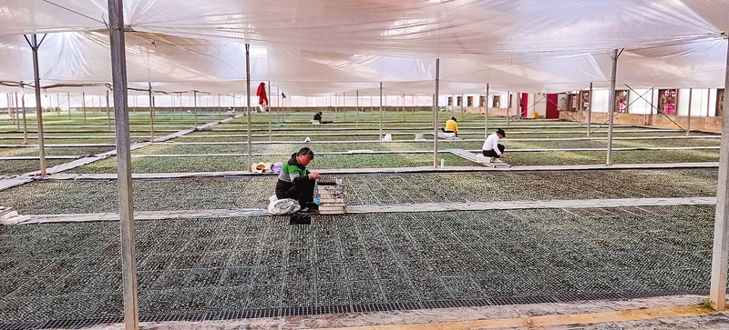 春日融融,大地回暖。當(dāng)下正是烤煙育苗的大好時(shí)節(jié),在洛南縣古景煙站內(nèi),育苗員正嚴(yán)格按照標(biāo)準(zhǔn)化育苗技術(shù)規(guī)程,有條不紊地開(kāi)展裝填基質(zhì)、裝盤、播種、漂盤入棚等一系列操作。“我們?cè)谶@里育煙苗、起壟,可以務(wù)工兩個(gè)多月,一天掙100塊錢,而且距離我家里也近,既能顧家又能賺錢。”育苗員李小麗說(shuō)。