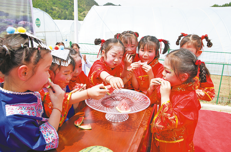 孩子們搶著吃西瓜