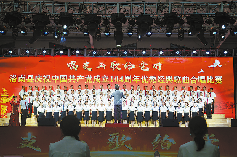 6月24日至26日,洛南縣慶祝中國共產(chǎn)黨成立104周年優(yōu)秀經(jīng)典歌曲合唱比賽在縣體育場開唱,28支參賽合唱隊通過一首首耳熟能詳、膾炙人口的優(yōu)秀經(jīng)典歌曲,表達(dá)對黨、對祖國深深的熱愛之情。 (本報通訊員 郭夏季 攝)