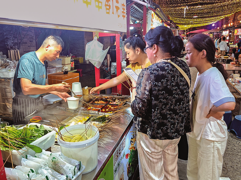 夜經(jīng)濟(jì)一頭連著消費(fèi),一頭連著就業(yè),是提升城市活力的重要引擎。發(fā)展“夜經(jīng)濟(jì)”既是滿足消費(fèi)者在夜間多元消費(fèi)的需要,也是促就業(yè)、保民生的必然選擇。“小吳烤面筋”攤主吳楠憑借4年的“守”藝積累了大批回頭客,日均營(yíng)業(yè)額近千元。“生意特別好,每天營(yíng)業(yè)到深夜1點(diǎn),雖然累但很充實(shí),而且這里也是我證明自己價(jià)值的舞臺(tái)?!眳情獦?lè)呵呵地說(shuō)。