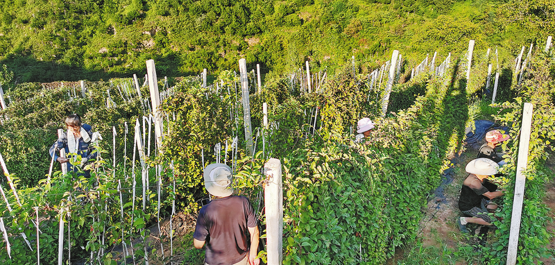 八月二十日,在洛南縣保安鎮(zhèn)黑潭村后坡塬上的洛南縣云瑞中藥材專業(yè)合作社一千三百多畝的五味子產(chǎn)業(yè)園里,工人正忙著采摘。近年來(lái),黑潭村依托當(dāng)?shù)貎?yōu)勢(shì)資源稟賦,不斷探索林下養(yǎng)雞、圈舍養(yǎng)牛、生豬飼養(yǎng)、連翹栽植以及北五味子產(chǎn)業(yè)發(fā)展賦能鄉(xiāng)村振興的新路子,持續(xù)壯大村級(jí)集體經(jīng)濟(jì),拓寬群眾增收渠道。(本報(bào)通訊員 楊開讓 攝)