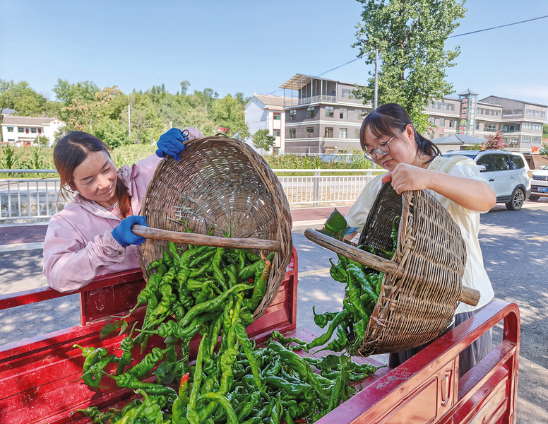 眼下,又到了辣椒采摘期。8月7日,走進(jìn)洛南縣四皓街道撫龍灣社區(qū)的洛南縣思強(qiáng)農(nóng)業(yè)專業(yè)合作社種植基地,放眼望去,一排排大棚鱗次櫛比,螺絲椒、線椒掛滿枝頭,村民忙著采摘、裝袋、搬運(yùn)、過秤、裝車,現(xiàn)場一派繁忙的豐收景象。