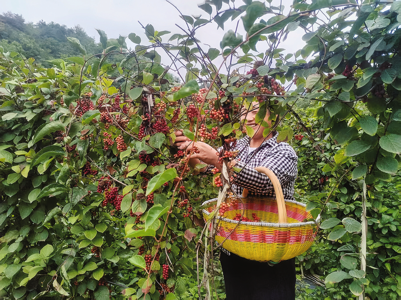 村民在采摘五味子
