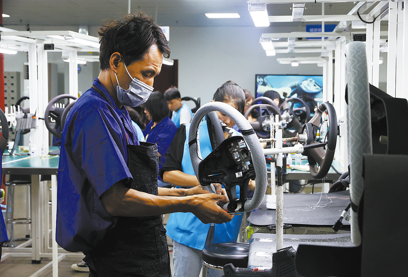 比亞迪實(shí)業(yè)有限公司生產(chǎn)車(chē)間內(nèi)工人忙碌有序