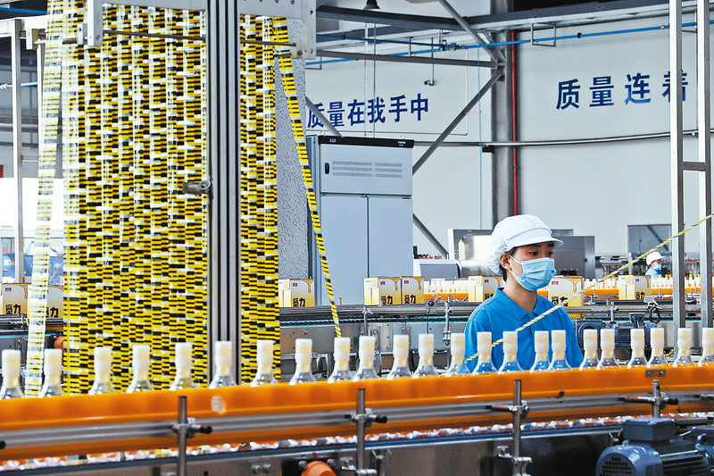 6月11日,商洛高新區(qū)商洛國蜂蜜水產(chǎn)業(yè)園內(nèi),工人正在生產(chǎn)線檢查產(chǎn)品包裝情況。據(jù)了解,該項(xiàng)目以鮮存雙儲(chǔ)蜂蜜水為核心產(chǎn)品,填補(bǔ)液態(tài)蜂蜜便攜飲品市場(chǎng)空白,與傳統(tǒng)瓶裝水形成差異化競爭,通過“一品帶三業(yè)”的模式,直接帶動(dòng)2000余戶職業(yè)蜂農(nóng)和檸檬種植戶,實(shí)現(xiàn)戶均增收近10萬元,提供直接就業(yè)崗位300余個(gè)。 (本報(bào)記者 楊 康 攝)