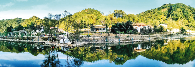 遠(yuǎn)山如黛,近水似玉。如鏡水面上,倒映著綠樹青瓦白墻以及那淡淡的落日余暉。一葉扁舟劃破水面的寧靜,歡聲笑語回蕩在綠水青山間。