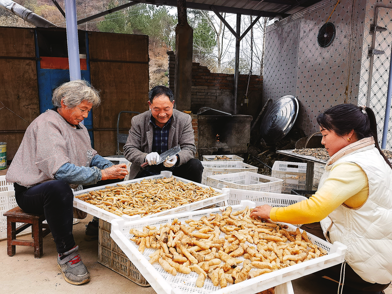 49歲的后灣村村民付芹一邊忙碌一邊說(shuō):“主要是要照顧孩子上學(xué),出不了遠(yuǎn)門(mén)。在這兒干活很輕松,都是手上活,而且一年到頭活兒還比較多。這幾天制作紅薯干,之后就是洗天麻、曬天麻片之類(lèi)的活兒,有時(shí)候還在藥材基地干活,勤快的話,一年能掙七八千塊錢(qián)。”
