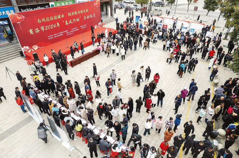 2月19日,商洛市2024年“春風(fēng)行動(dòng)”啟動(dòng)儀式在商南縣西街廣場舉行,40多家市內(nèi)重點(diǎn)企業(yè)代表、10家浙江企業(yè)代表、10家南京企業(yè)代表、9家咸陽企業(yè)代表、8家人力資源公司代表以及商南縣各鎮(zhèn)村的富余勞動(dòng)力、退役軍人、高校畢業(yè)生、搬遷群眾等求職人員2000多人參加了活動(dòng)。據(jù)了解,現(xiàn)場提供的5000多個(gè)招聘崗位,涉及加工制造、金融商貿(mào)、電子科技、汽車制造等多種行業(yè)。 (本報(bào)記者 胡 蝶 攝)