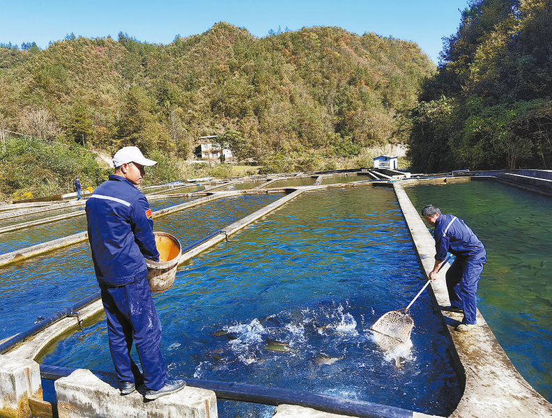 好山好水出好魚。十里坪鎮(zhèn)是滔河和冷水河的源頭,森林覆蓋率高,生態(tài)環(huán)境好,境內(nèi)山泉水充沛,冷水資源豐富,有著獨(dú)特的高山小氣候,是冷水魚養(yǎng)殖優(yōu)勢(shì)發(fā)展區(qū)。近年來,十里坪鎮(zhèn)牢牢守好發(fā)展和生態(tài)兩條底線,依托獨(dú)特的地理環(huán)境與資源稟賦,深入踐行“兩山”理念,挖掘高山冷水資源,招引技術(shù)型企業(yè),大力培育冷水魚產(chǎn)業(yè),生態(tài)冷水魚養(yǎng)出致富“熱”產(chǎn)業(yè),為鄉(xiāng)村振興、群眾致富打開了一條新路子。