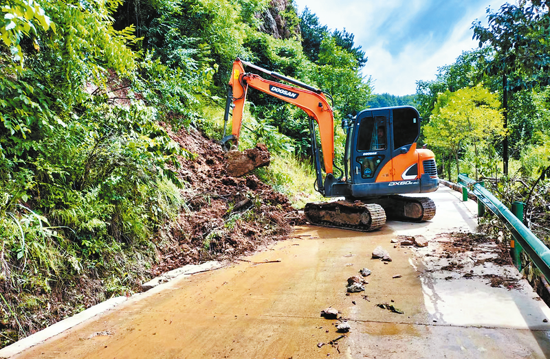 7月22日,山陽縣王閻鎮(zhèn)靳家河村水毀路段,鎮(zhèn)村干部正組織人員采用“人工+機械”方式,抓緊修復和搶通公路,全力以赴保障群眾恢復正常生產(chǎn)生活。 (本報通訊員 蔡彥君 攝)