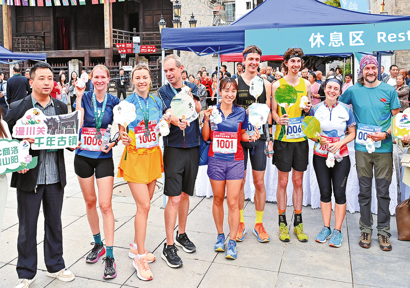 10月12日,在預熱活動交流體驗賽中,外籍運動員奔跑在漫川古鎮(zhèn)。