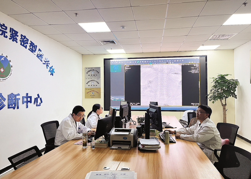 縣醫(yī)院診斷中心內(nèi),影像醫(yī)生正在對(duì)傳來(lái)影像進(jìn)行診斷。