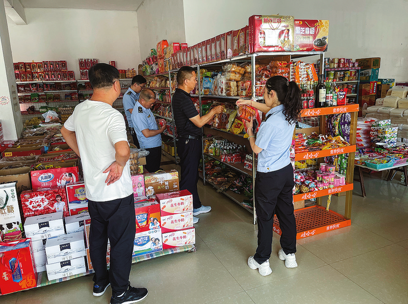 市監(jiān)局執(zhí)法人員在楊地鎮(zhèn)商店檢查食品保質期、儲存條件,筑牢安全防線。