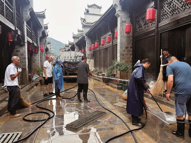 10日凌晨4時(shí),縣城管局抽調(diào)30多人,帶著大型抽水泵,開著灑水車、吸污清洗車等趕赴漫川關(guān)。“作業(yè)的難點(diǎn)一是沒有施工圖,對地下排水管網(wǎng)分布不清楚,二是為了保護(hù)古街地面的花紋、地磚,只能動用小型鏟車,通過手工探摸井蓋,開展淤泥雜物清理和地下排水管網(wǎng)疏通。”縣城管局局長楊昌說,目前,他們已對全鎮(zhèn)污水管網(wǎng)和污水處理廠受損管網(wǎng)進(jìn)行統(tǒng)計(jì),并加急維修。