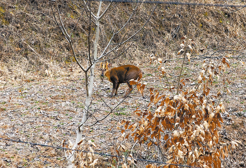 2月14日,筆者在商州青棉溝,發(fā)現(xiàn)一頭如同小牛的動(dòng)物在吃草,隨即抓拍了幾幅圖片。隨后經(jīng)查資料,得知這是國(guó)家近危野生動(dòng)物——小麂。據(jù)了解,小麂主要分布于中國(guó)長(zhǎng)江以南各省,列入中國(guó)生物多樣性紅色名錄——脊椎動(dòng)物卷,評(píng)估級(jí)別為近危(NT)。其以青草、樹木的嫩葉、幼芽、果實(shí)、種子、傘菌為食。野生小麂的出現(xiàn),是對(duì)商洛生態(tài)環(huán)境日益改善的有力詮釋。(本報(bào)通訊員 王曉寧 攝)