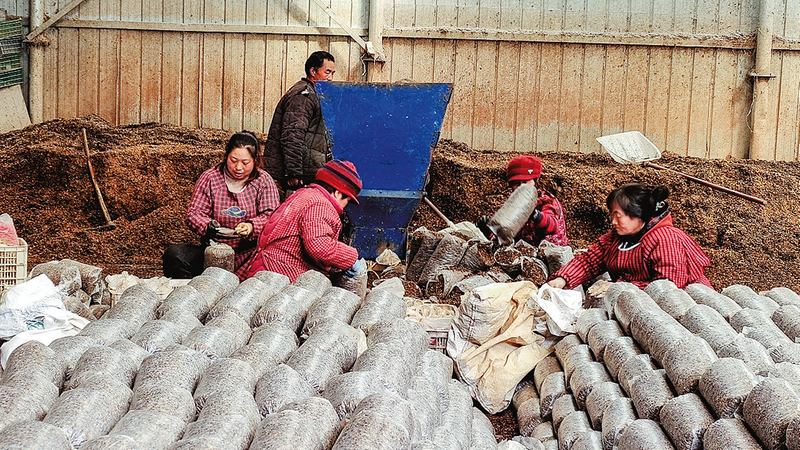“每年春季開始生產(chǎn),邊做棒子邊生產(chǎn),蒸好以后滅菌、接種,然后就要出菇了。一年加工20萬袋,很實惠。”秦關(guān)社區(qū)產(chǎn)業(yè)大戶陳民干說。