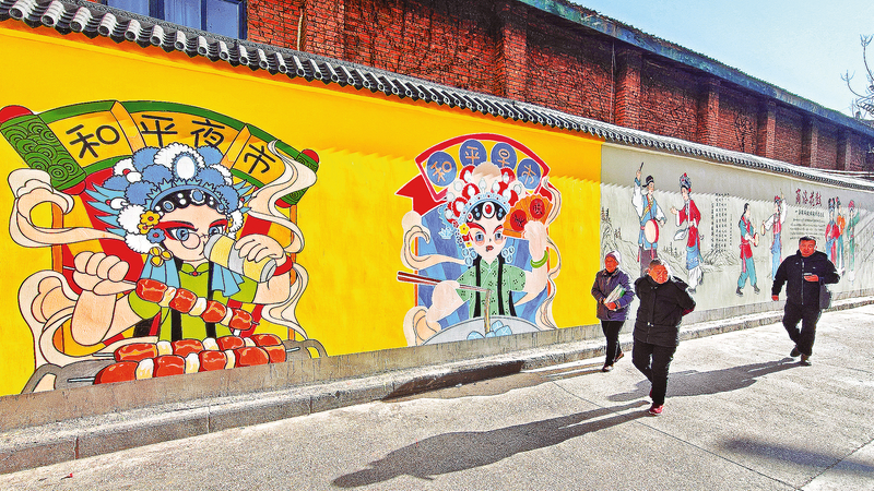 商州區(qū)和平社區(qū)戲鄉(xiāng)巷的墻繪讓巷子煥然一新 (本報(bào)記者 楊 鑫 攝)