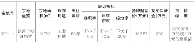 五、申請人可于2025年1月22日至2025年2月18日到商洛市自然資源局商州分局土地收購儲備中心向我局提交書面申請。繳納競買保證金的截止時間為2025年2月18日16時00分。經(jīng)審查,申請人按規(guī)定繳納競買保證金,具備申請條件的,我局將在2025年2月18日17時00分前確認(rèn)其競買資格。