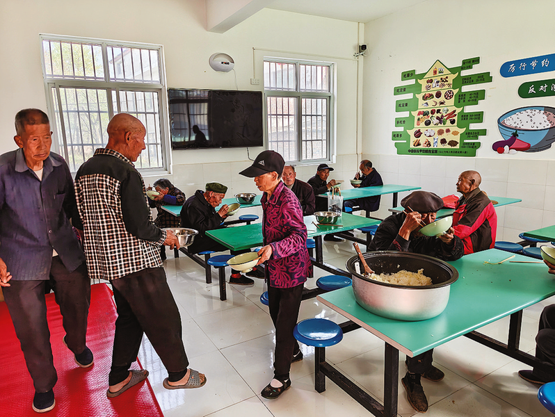 食堂運(yùn)轉(zhuǎn)起來(lái),光靠一兩個(gè)人忙不過(guò)來(lái),于是黨員干部、志愿者與熱心村民一起上陣。有人掃地擦桌子,有人取餐遞餐具,還有人專門守在門口,攙扶著腿腳不便的老人就餐。一到飯點(diǎn),飯菜香氣撲鼻,整個(gè)食堂都蕩漾著煙火氣和濃濃暖意。