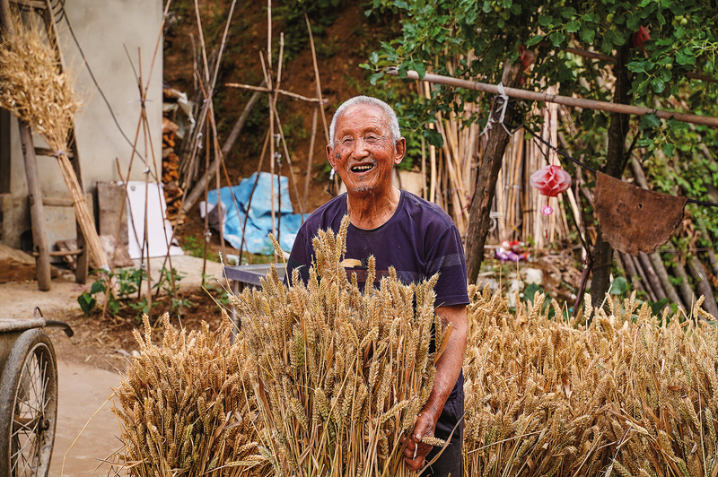 今年,商州遭遇了嚴(yán)重的干旱。令人欣慰的是,因?yàn)樯礁摺⒌貧鉀?、前不久的人工增雨和和精耕?xì)作,除了幾分陡坡地減產(chǎn)外,其他小麥都豐收了。望著這一片金黃的麥浪,老人臉上露出了欣慰的笑容:“地不哄人啊,只要你真心對(duì)它,它就會(huì)給你回報(bào)。”老人質(zhì)樸的話語(yǔ)中,蘊(yùn)含著一生與土地打交道的深刻感悟。