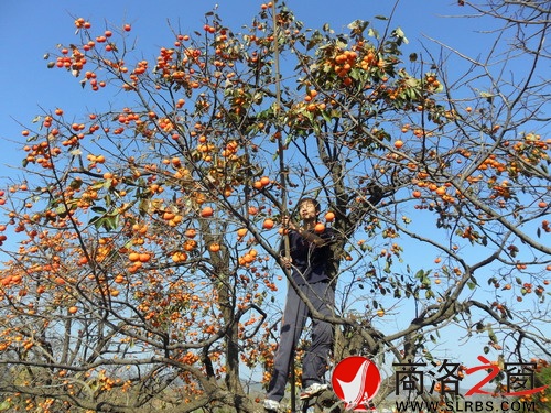今年,風調雨順,雨量充沛,柿子豐收,碩果累累。在洛南縣景村鎮(zhèn)鄉(xiāng)村山野的溝溝岔岔、梁梁峁峁、房前屋后、路邊渠旁,一株株、一排排、一片片的柿樹,呈現出一派前所未有的罕見豐收景象。那一嘟嚕一嘟嚕、一疙瘩一疙瘩的柿子,簡直就像葡萄、谷穗一樣,沉甸甸地直垂到地面。一株柿樹就是一把火炬,一片柿樹就是一抹紅霞,一坡柿樹就是萬盞紅燈。
